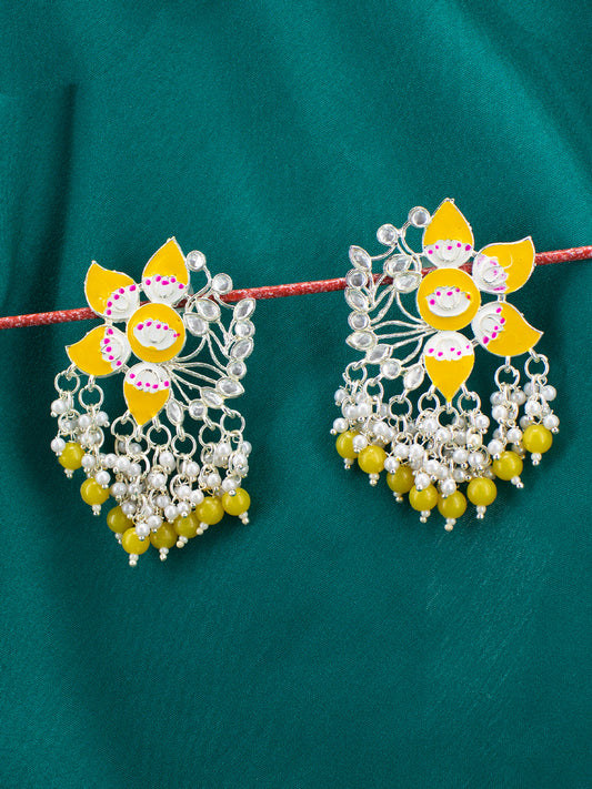 Silver Plated Floral Meenakari Kundan Chandbalis