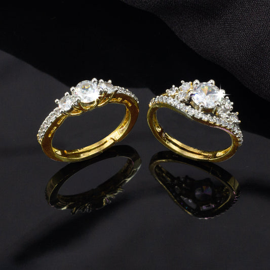 • Trendy Set of Two Solitaire American Diamond Adjustable Couple Rings