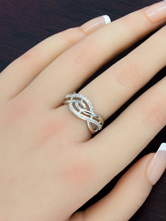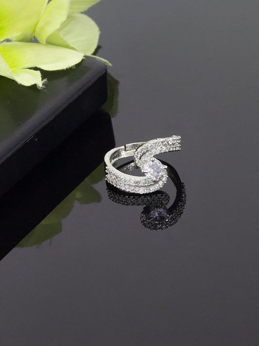 Rhodium Plated American Diamond Adjustable Finger Ring