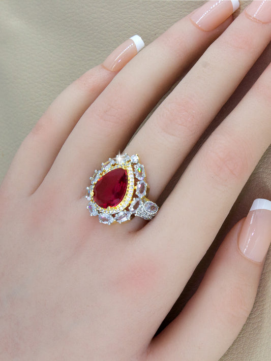 • Gold Plated Red AD Adjustable Designer Ring For Women