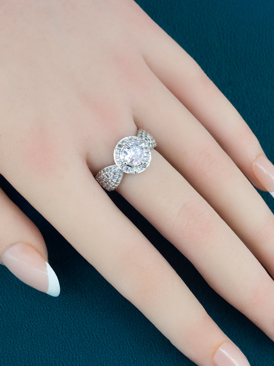 Rhodium Plated Solitaire American Diamond Adjustable Finger Ring