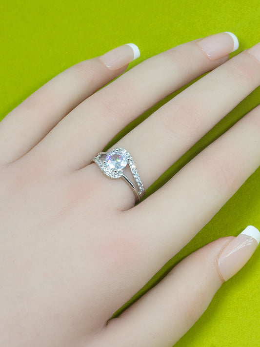 • Rhodium Plated Solitaire American Diamond Adjustable Finger Ring