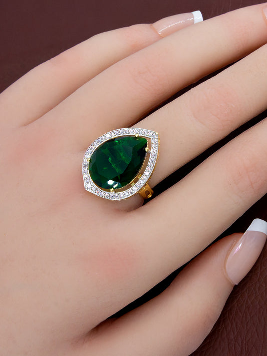 • Gold Plated AD Green Cocktail Adjustable Ring