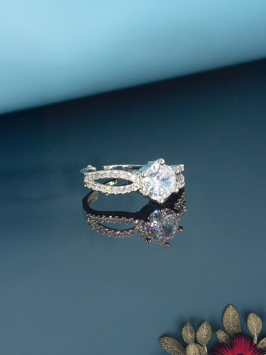 Rhodium Plated Solitaire AD Adjustable Trendy Finger Ring