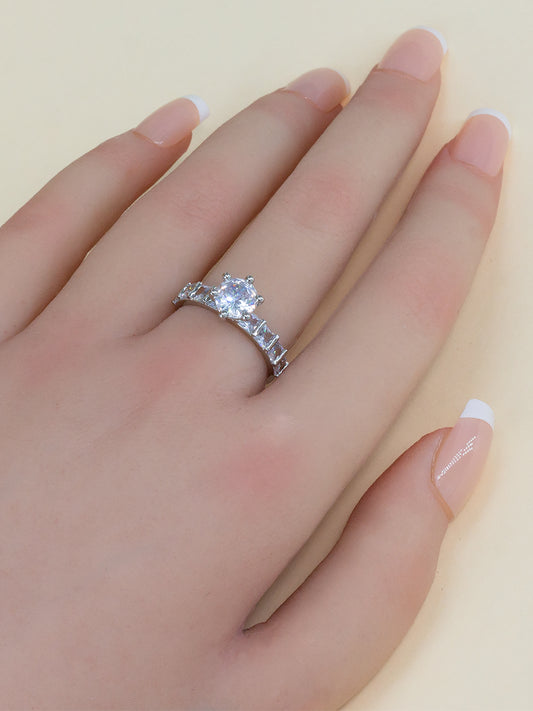 • Rhodium Plated Solitaire American Diamond Minimal Adjustable Finger Ring