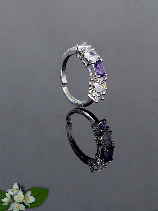 • Rhodium Plated Purple American Diamond Adjustable Finger Ring