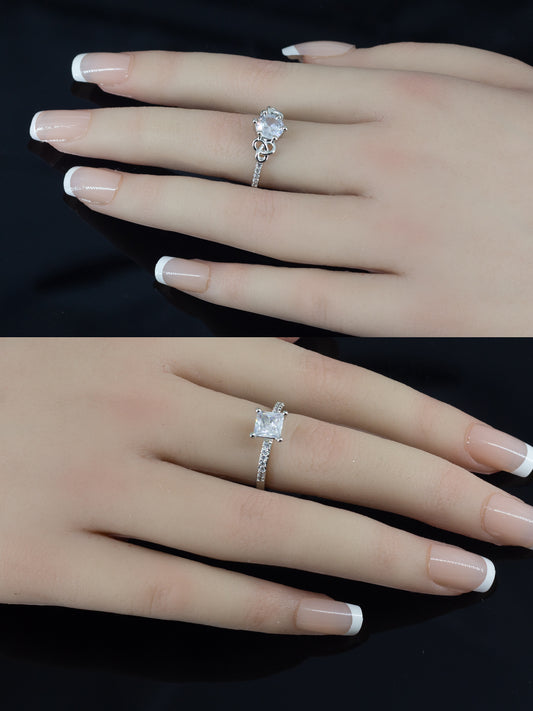 • Set Of Two Rhodium Plated Solitaire American Diamond Trendy Adjustable Finger Rings