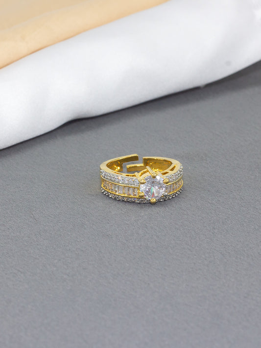 Gold Plated Solitaire American Diamond Adjustable Finger Ring