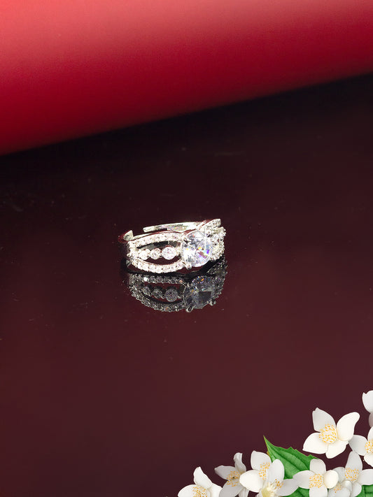 Rhodium Plated American Diamond Adjustable Solitaire Finger Ring