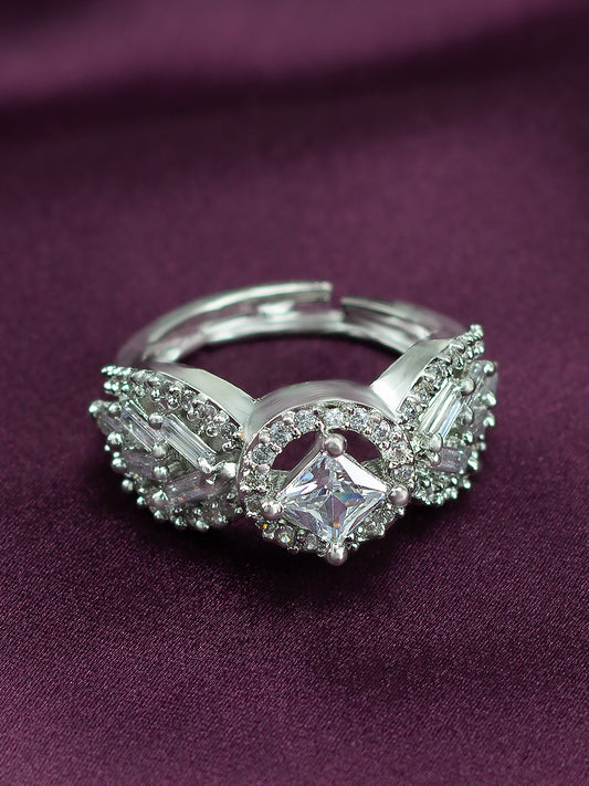 Silver-Plated American-Diamond Studded Adjustable Finger Ring