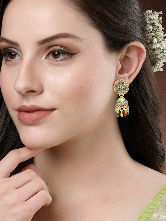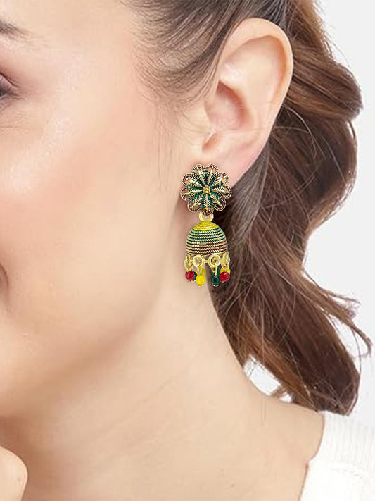 Gold Plated Floral Circular Multi Color Artificial Beaded Jhumki Earrings