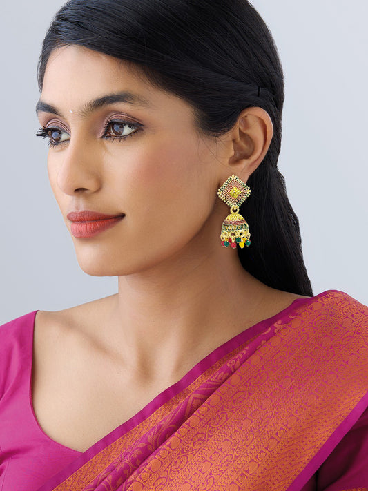 Gold Plated Square Multi Color Artificial Beaded Jhumki Earrings