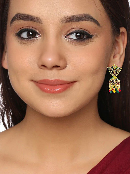 Gold Plated Butterfly Multi Color Artificial Beaded Jhumki Earrings