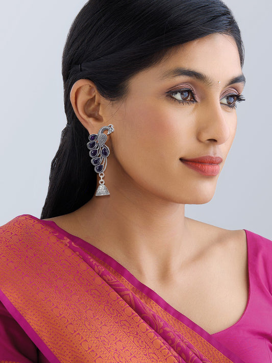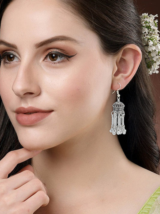 Silver Oxidized Floral Elephant Jhumka Earrings