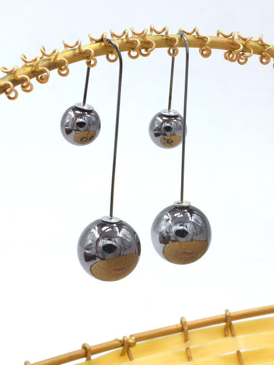 Gun Plated Artificial Beaded Quirky Drop Earrings