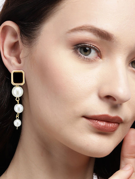 Gold Plated & Black Drop & Artificial Beads Earrings