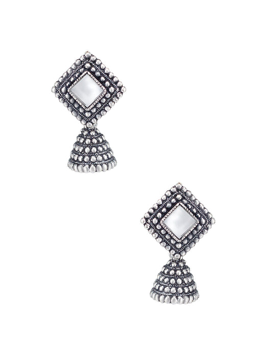 Silver Oxidized Square Mirror Studded Jhumki Earrings