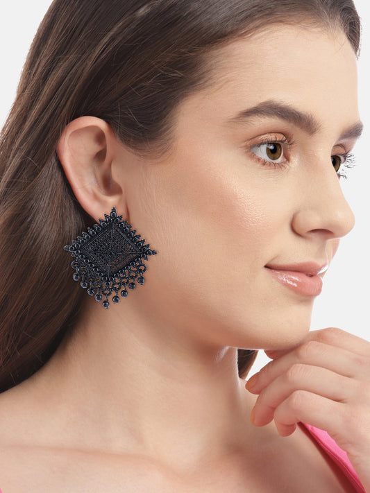 Black Square Shaped Stud Earrings