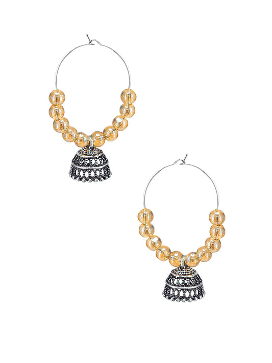 Silver Oxidised Brown Artificial Beaded Hoop Jhumki Earrings