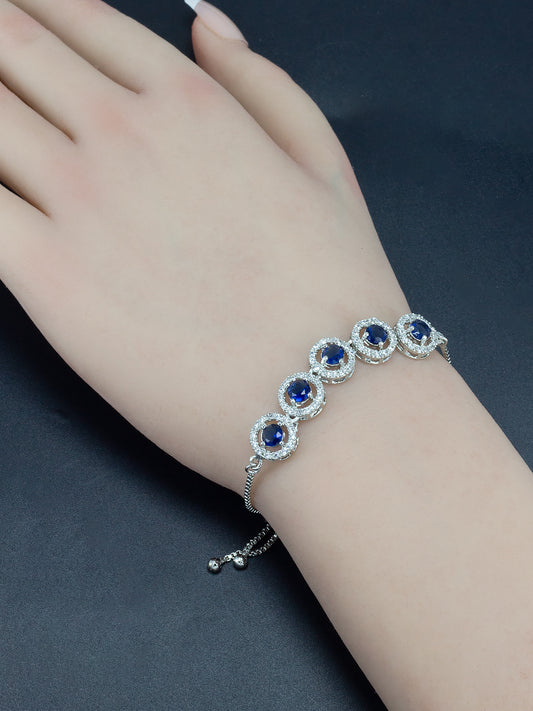 Blue American Diamond Studded Circular Adjustable Bracelet Gift For Women