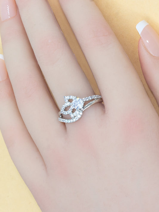 Rhodium Plated Floral American Diamond Adjustable Finger Ring