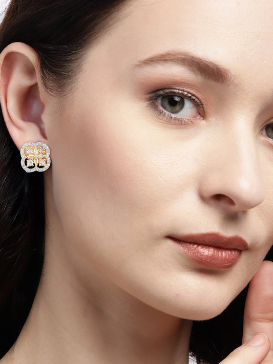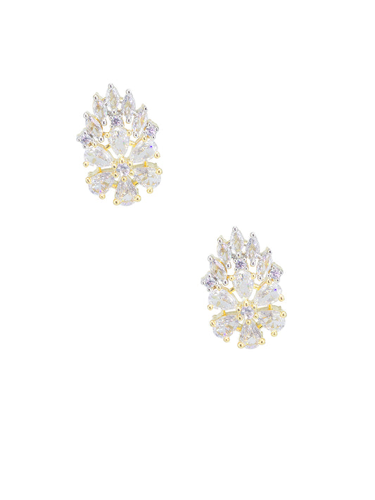 Gold Plated Floral Trendy American Diamond Stud Earrings