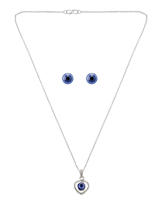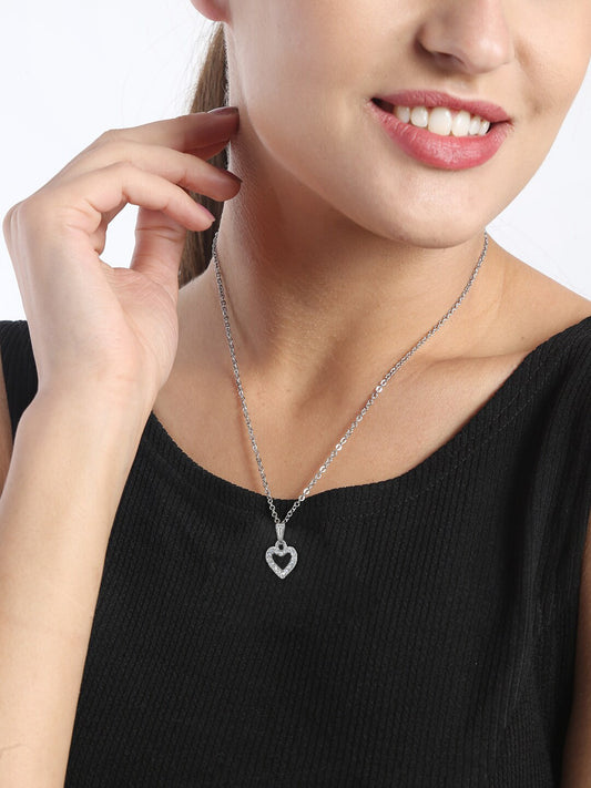 Silver Plated CZ Studded Heart Shaped Pendant & Studs Set