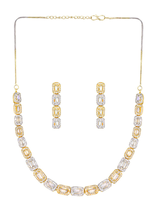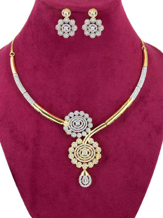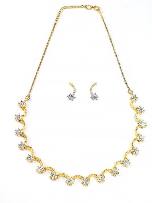 Gold Plated American Diamond Minimal Design Jewellery Set