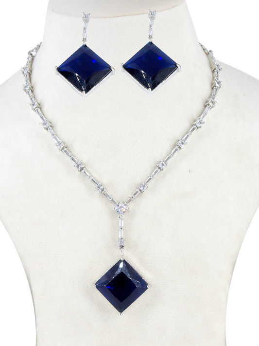 American Diamond Studded Royal Blue Square Drop Design Jewellery Set For Women And Girls