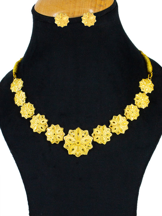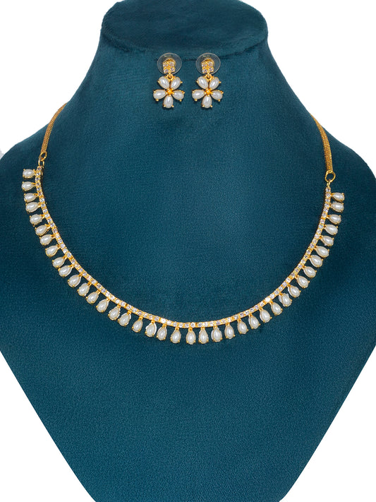 Gold Plated American Diamond & Faux Pearls Floral Jewellery Set
