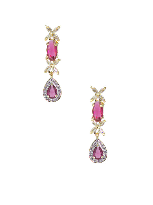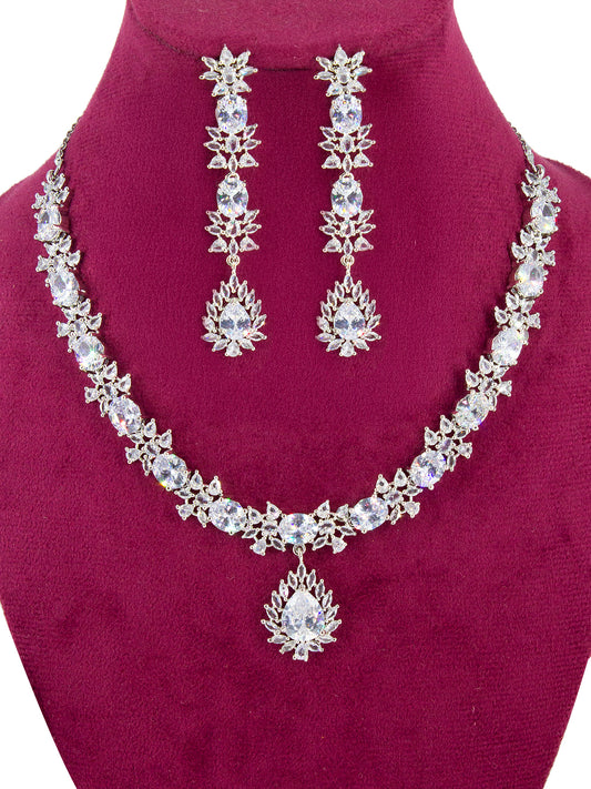 American Diamond Floral Design White Drop Jewellery Set For Women And Girls