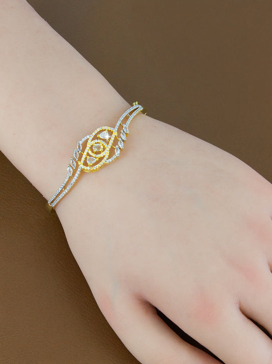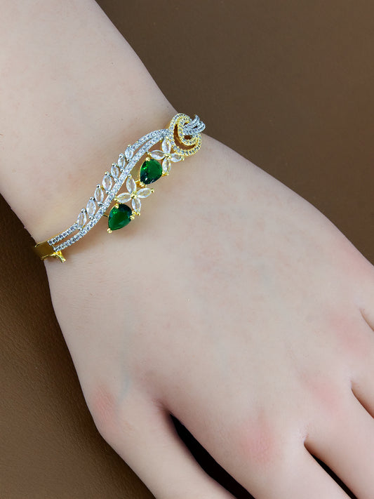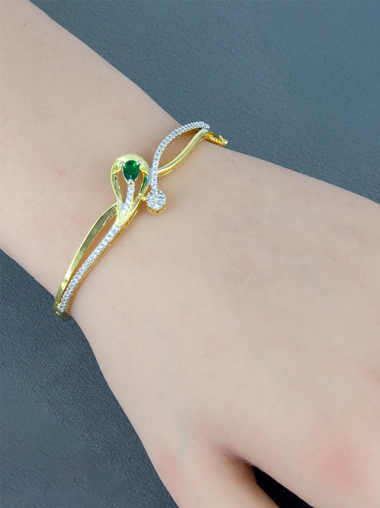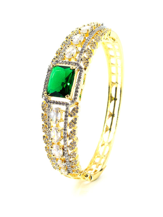 Gold Plated Green AD Minimal Cuff Bracelet For Women