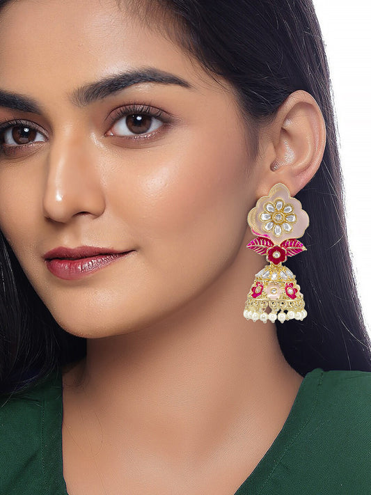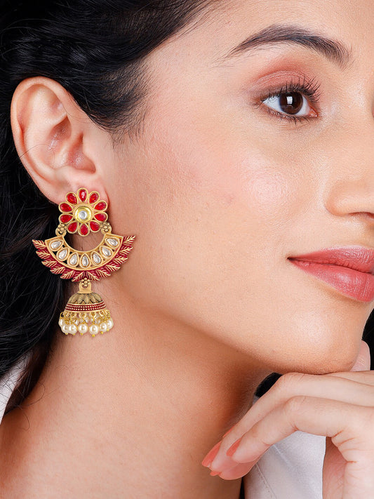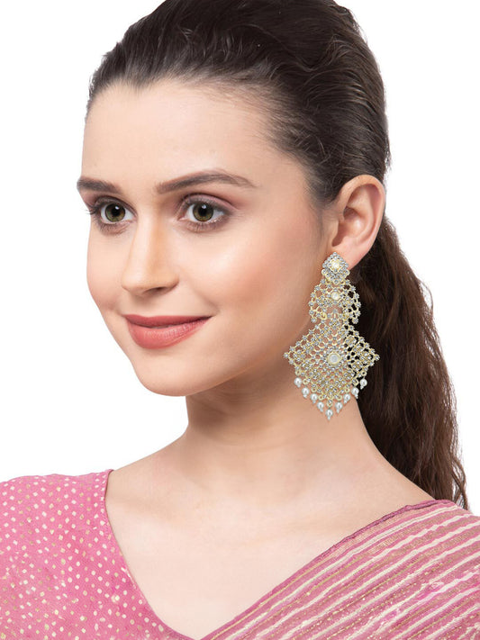 Gold-Plated Kundan Studded Contemporary Drop Earrings