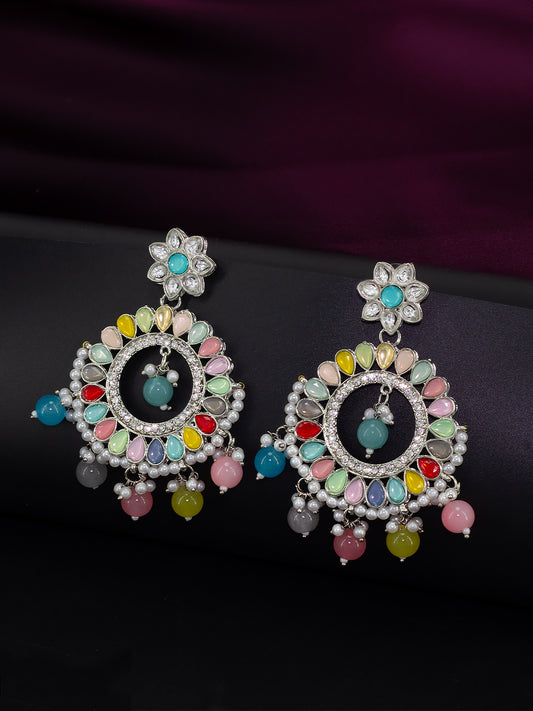 Silver Plated Multi Color Contemporary Chandbalis Earrings
