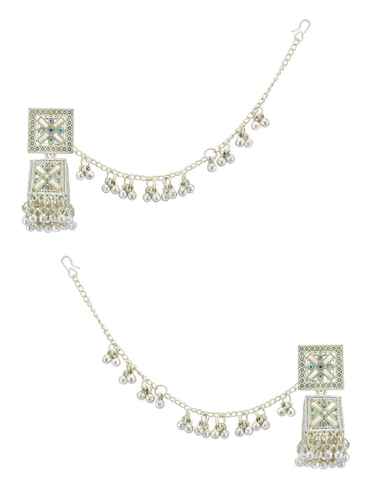 Gold Plated Artificial Stones & Beads Square Jhumka with Chain Earring