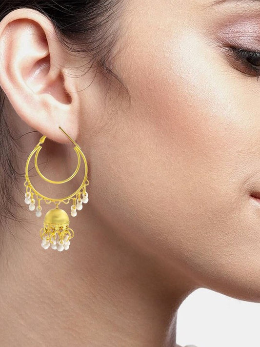 Gold Plated CZ & Beads Studded Earring With Maang Tikka