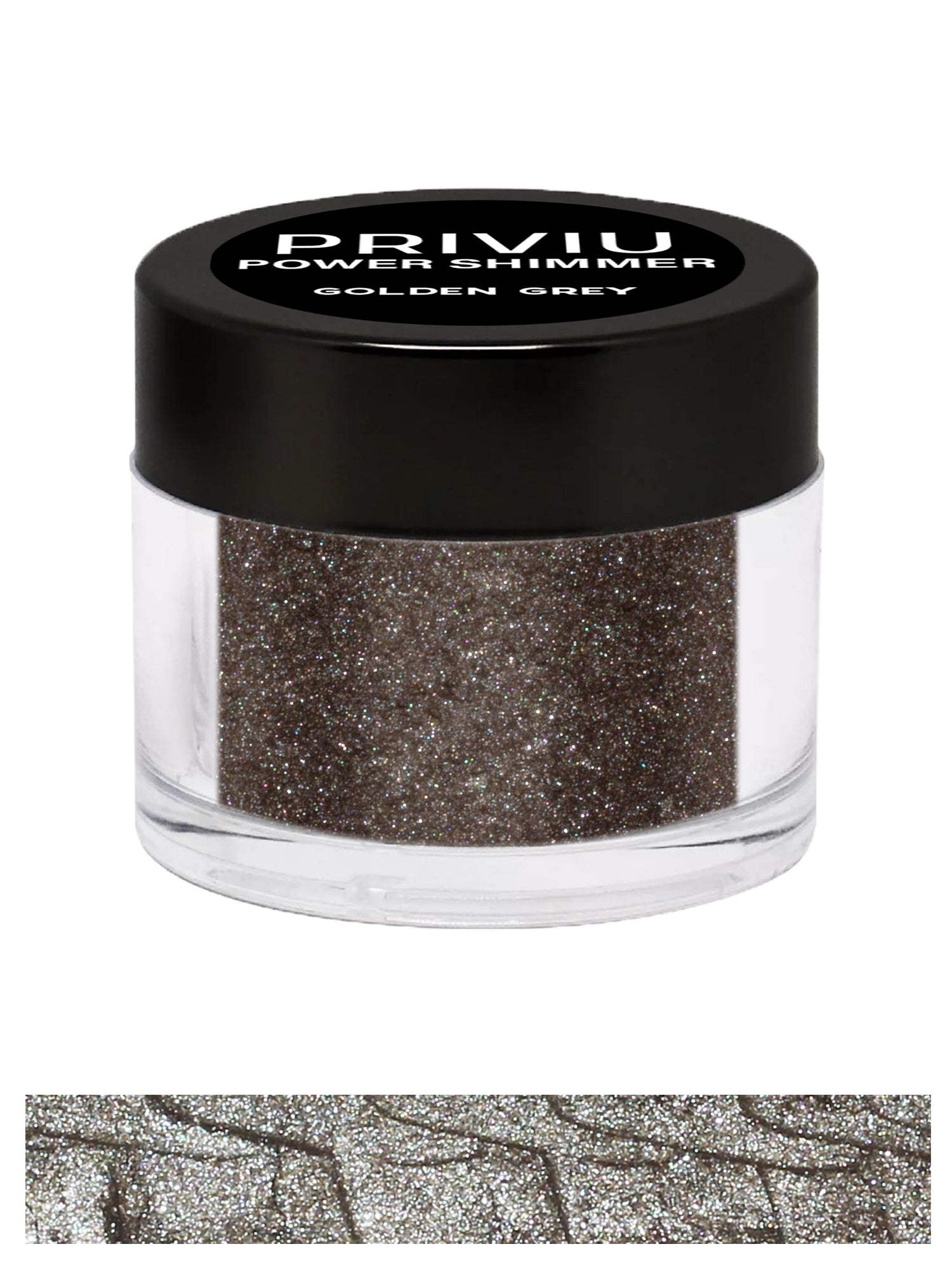 PRIVIU Power Shimmer Metallic Eye Makeup Loose Glitter Eyeshadow Powder (Talc Free) 7 Golden Grey, 3g, Made up of natural ingredients, no harmful chemicals used. Preservative free, Cruelty free, Vegan
