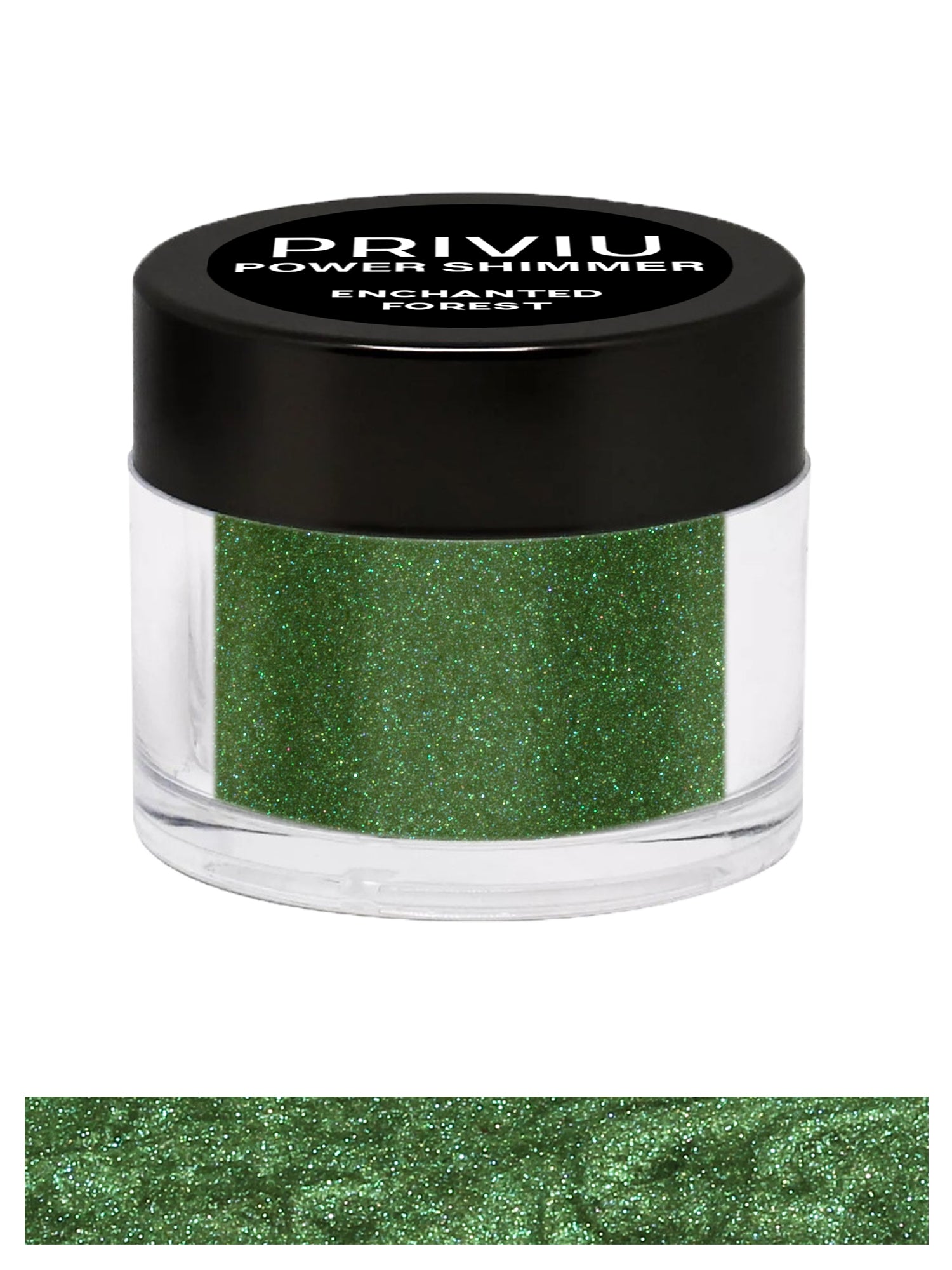 PRIVIU Power Shimmer, Loose Pigment Eyeshadow Powder, Chrome Effect, Professional Makeup Look, 3 Grams, Enchanted Forest, Made up of natural ingredients, no harmful chemicals used. Preservative free, Cruelty free, Vegan