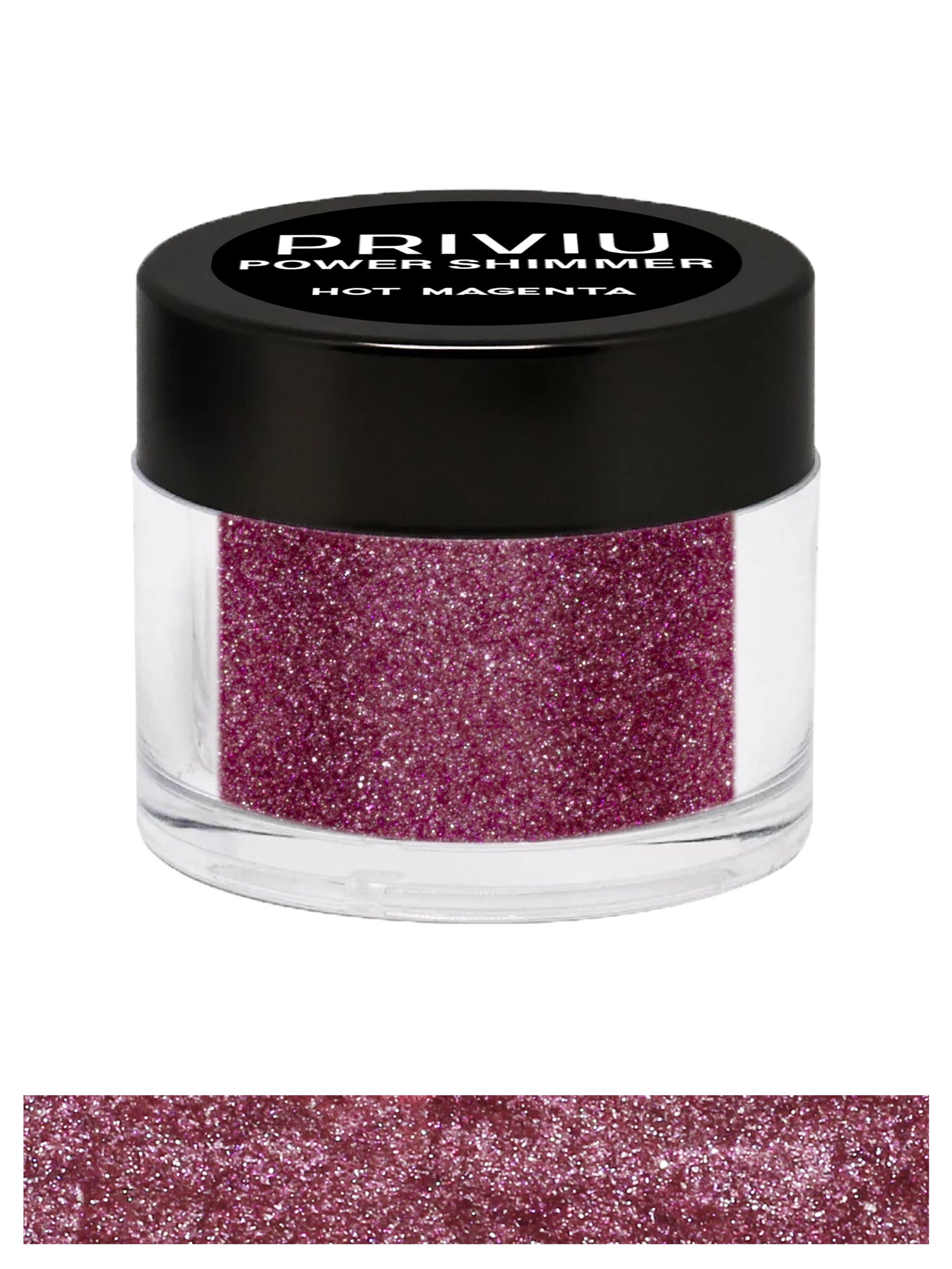 PRIVIU Power Shimmer Metallic Eye Makeup Loose Glitter Eyeshadow Powder (Talc Free) Hot Magenta 17, 3g, Made up of natural ingredients, no harmful chemicals used. Preservative free, Cruelty free, Vegan