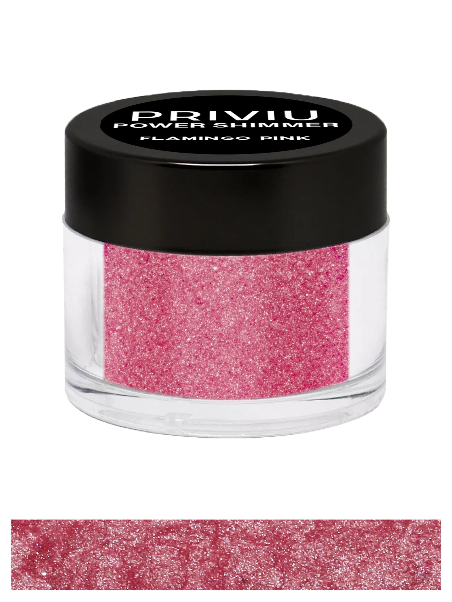 PRIVIU Power Shimmer, Loose Pigment Eyeshadow Powder, Chrome Effect, Professional Makeup Look, 3 Grams, Flamingo Pink, Made up of natural ingredients, no harmful chemicals used. Preservative free, Cruelty free, Vegan