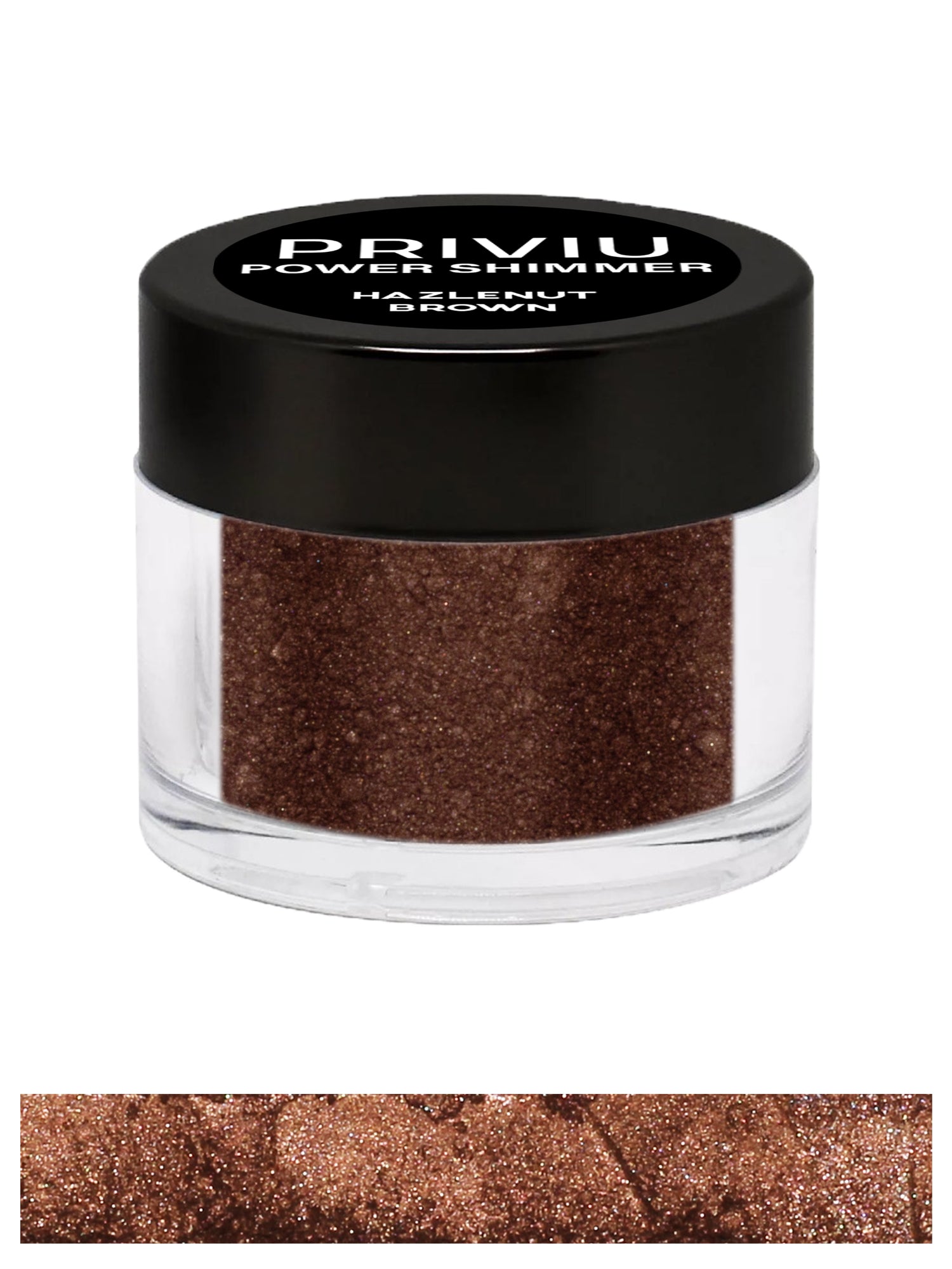PRIVIU Power Shimmer, Loose Pigment Eyeshadow Powder, Chrome Effect, Professional Makeup Look, 3 Grams, Hazelnut Brown, Made up of natural ingredients, no harmful chemicals used. Preservative free, Cruelty free, Vegan