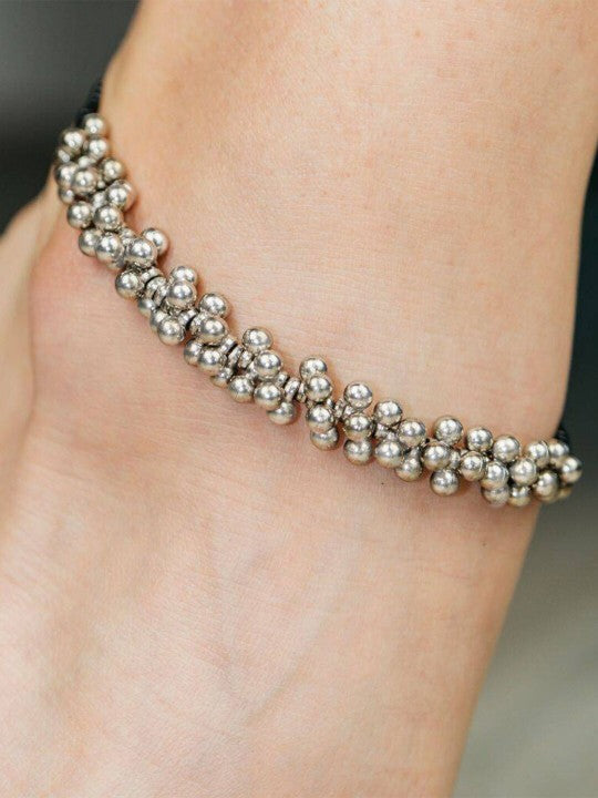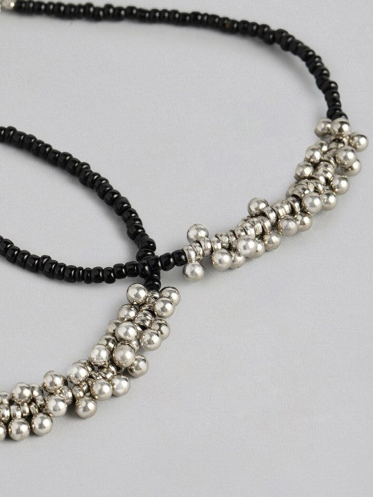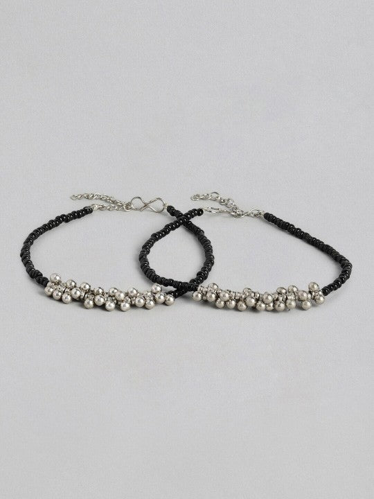 Pair of Black Beaded Anklet For Women secured with s hook closure.