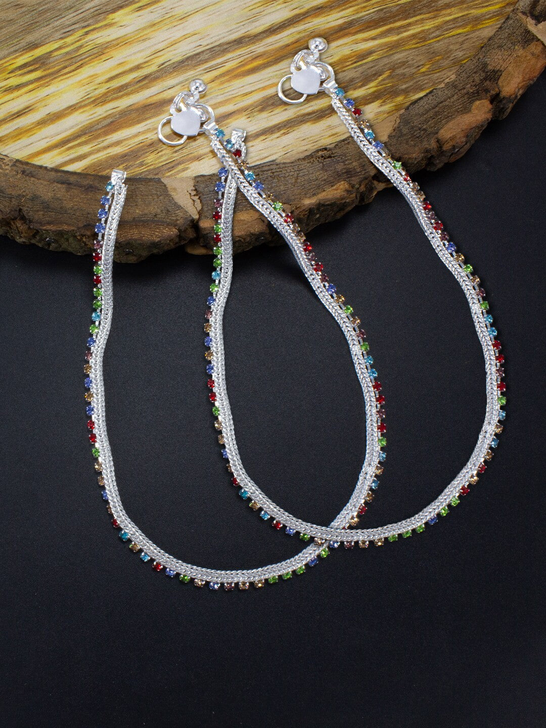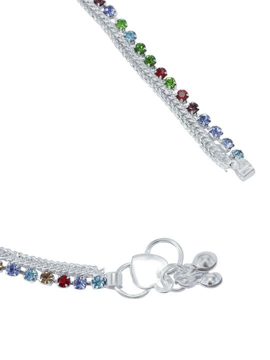 Pair of Silver-Plated Crystal-Studded Anklets For Women