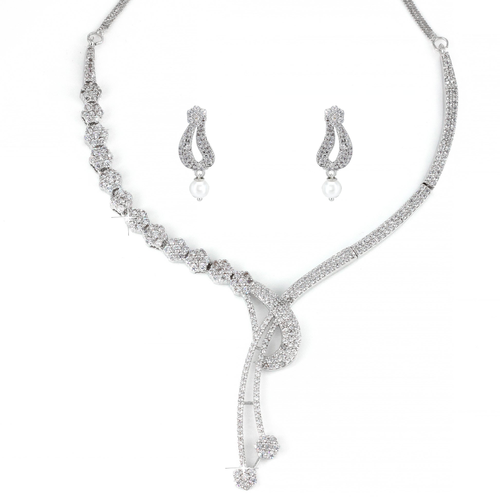 Rhodium Plated Teardrop American Diamond Studded Trendy Pendant Set