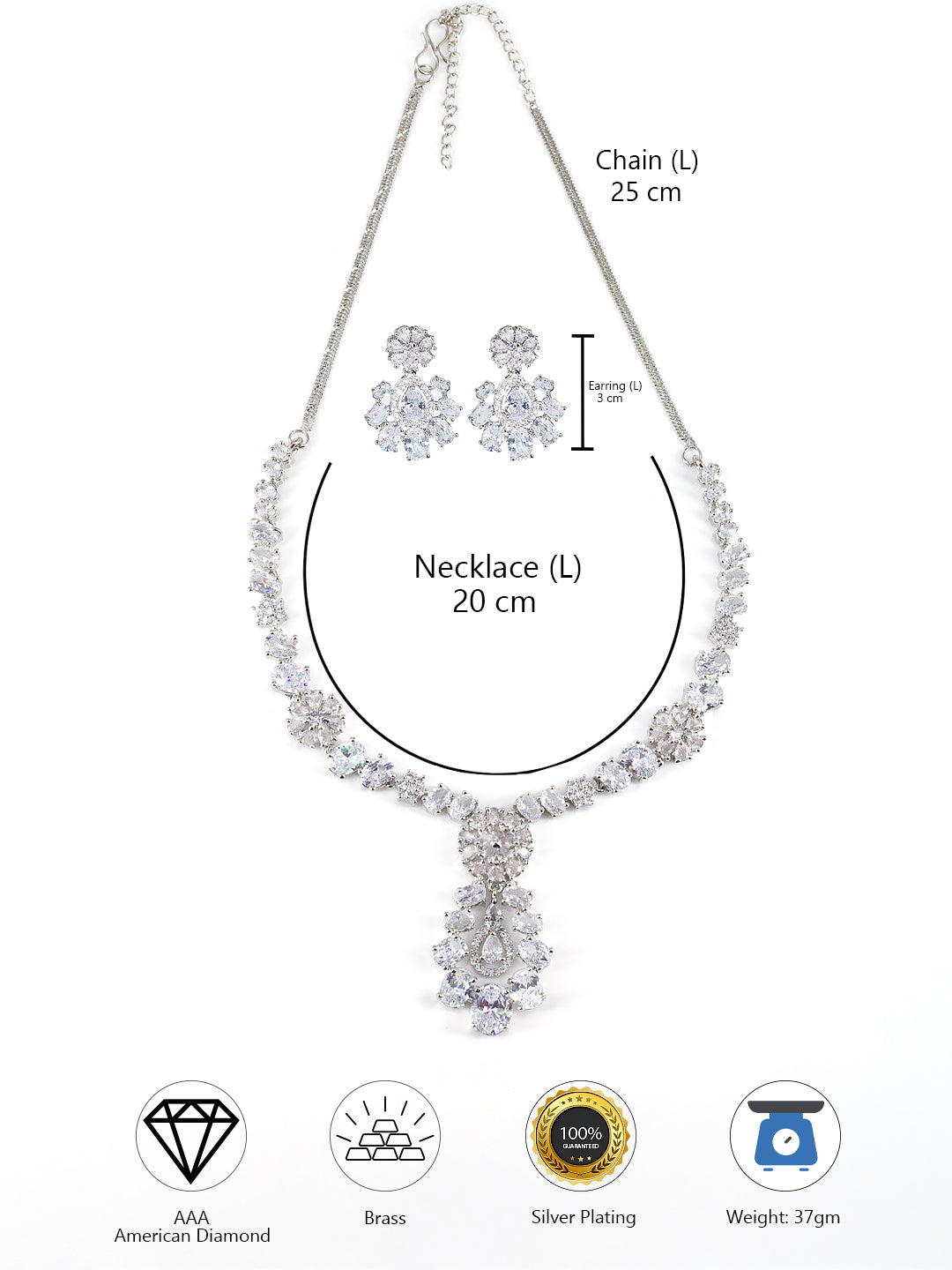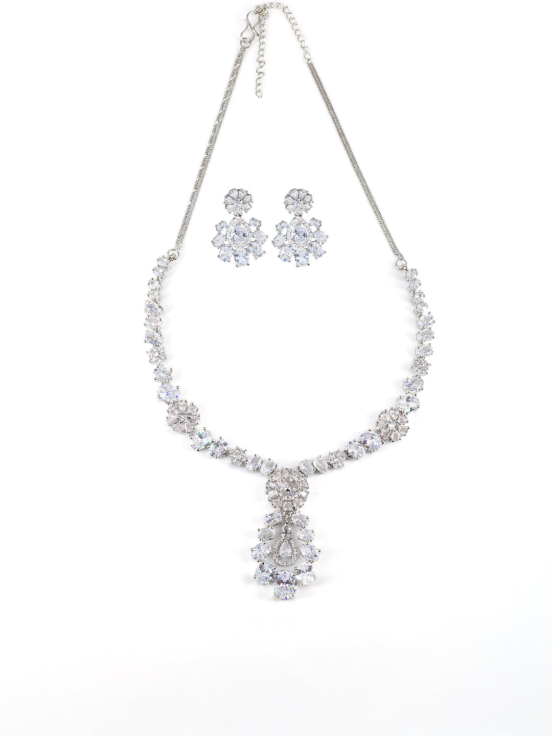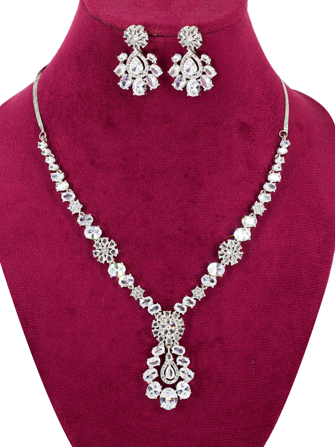 Rhodium Plated Teardrop American Diamond Studded Trendy Pendant Set