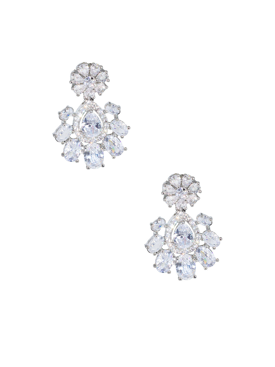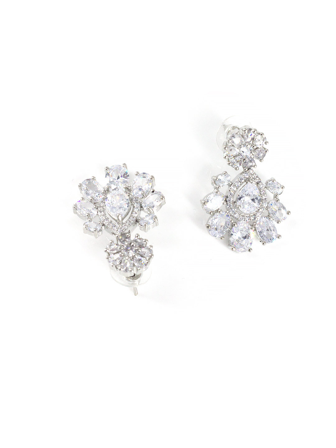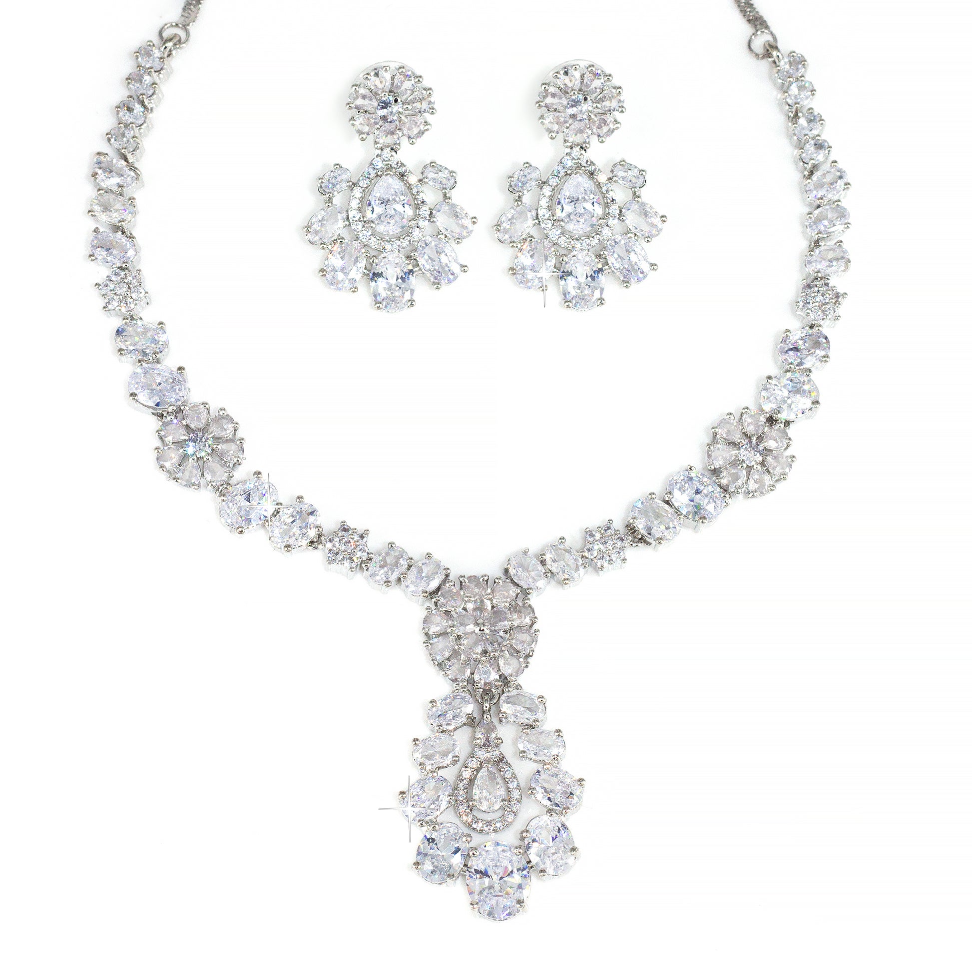 Rhodium Plated Teardrop American Diamond Studded Trendy Pendant Set