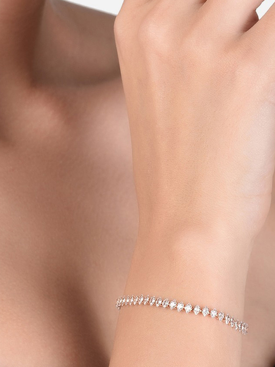 Elevate your style with our Rose Gold Plated American Diamond Adjustable Bracelet. The beautiful rose gold plating adds a touch of sophistication, while the adjustable design ensures a perfect fit for anyone. Made with high-quality American diamonds, this bracelet will add a subtle sparkle to any outfit.