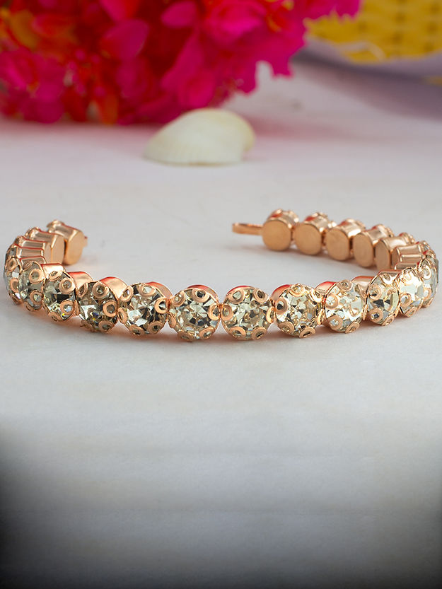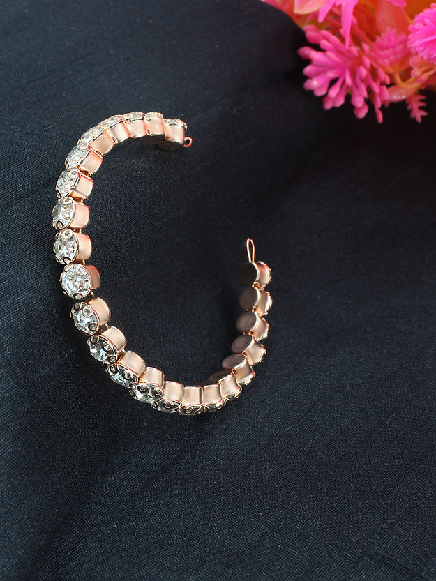 Rose Gold Plated CZ Studded Cuff Bracelet For Girls