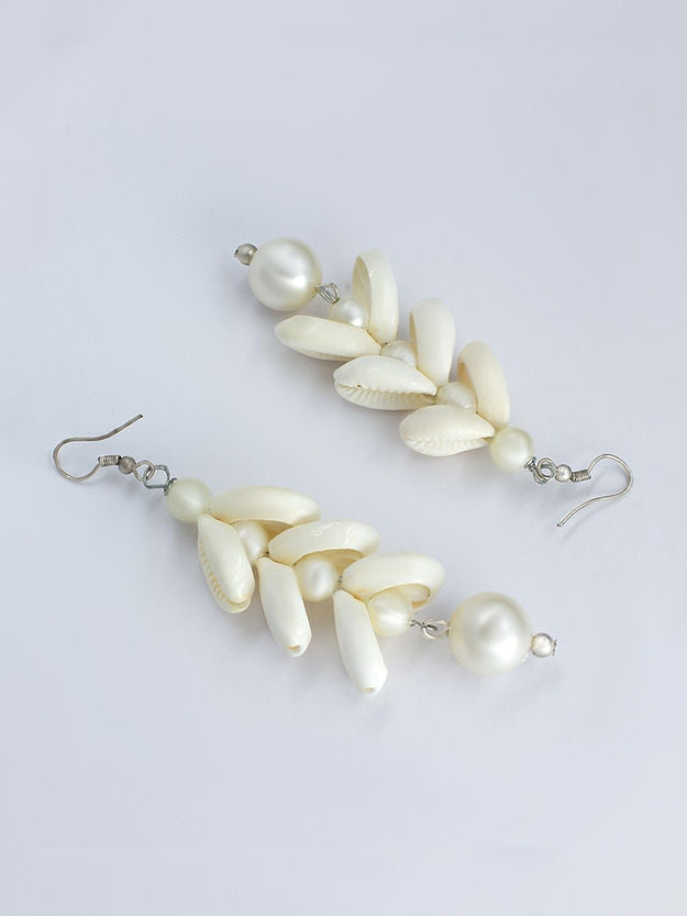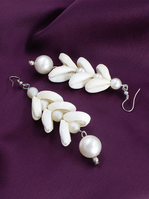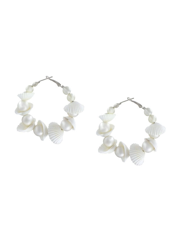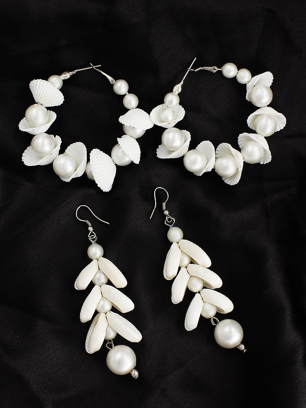 Pack Of 2 Silver Plated Faux Pearls & Shells Drop and Hoop Earrings