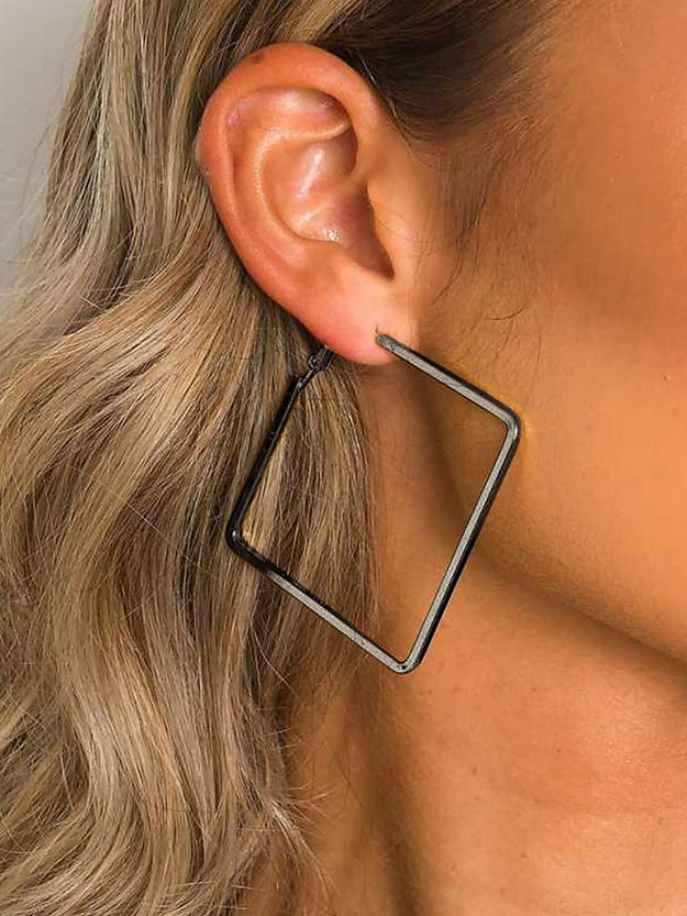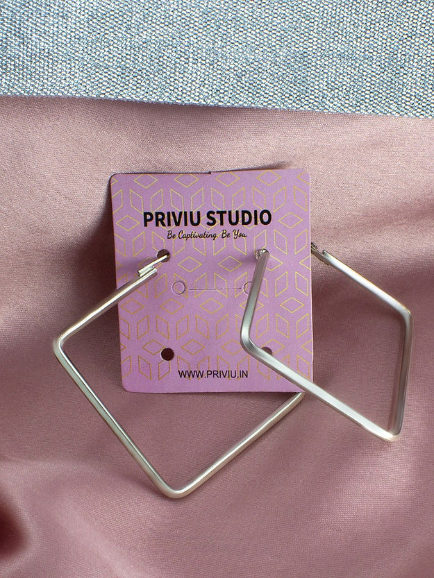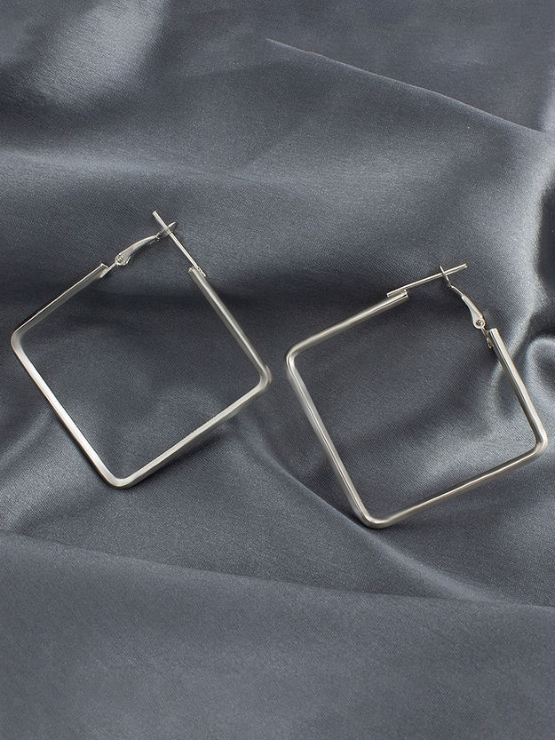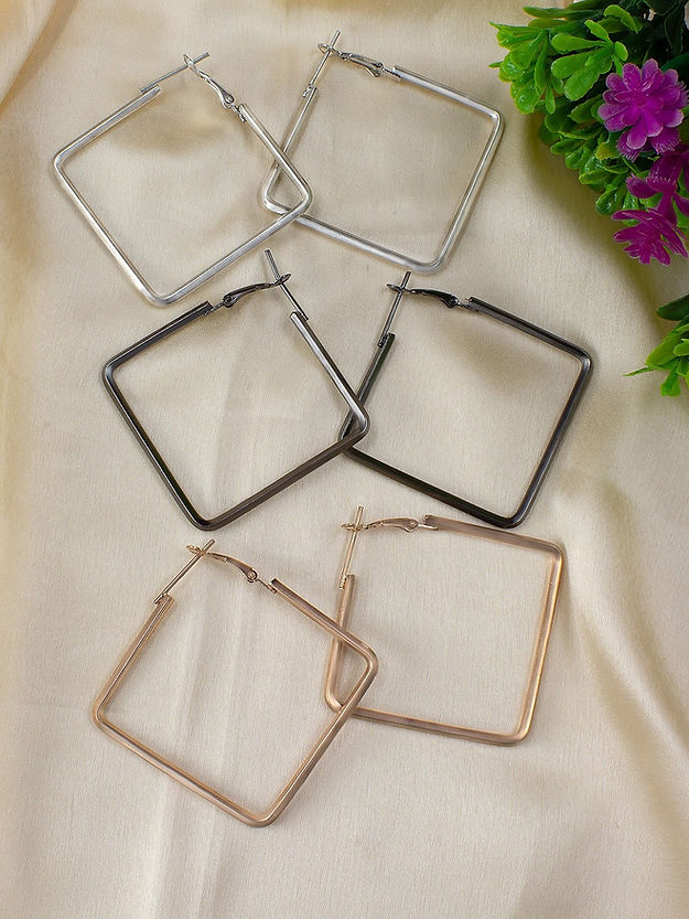 Pack Of 3 Silver-Plated Square-Shaped Hoop Earrings